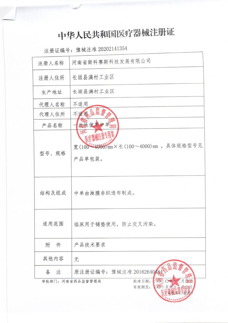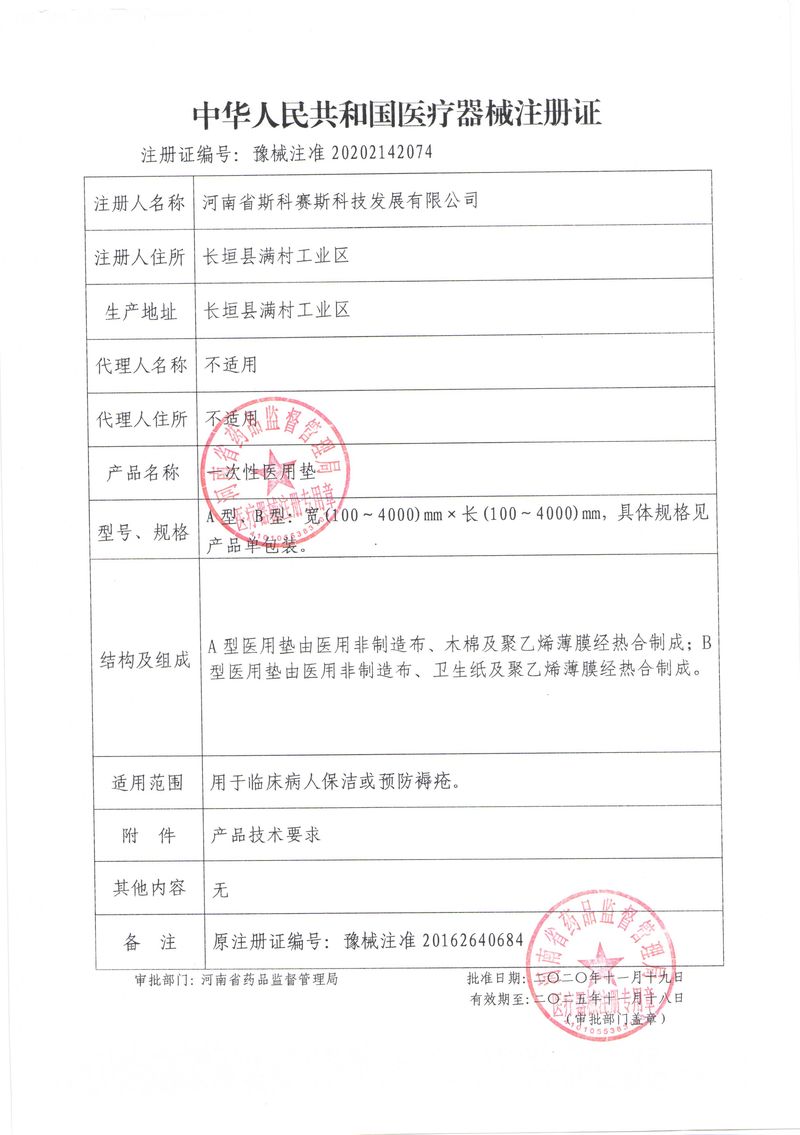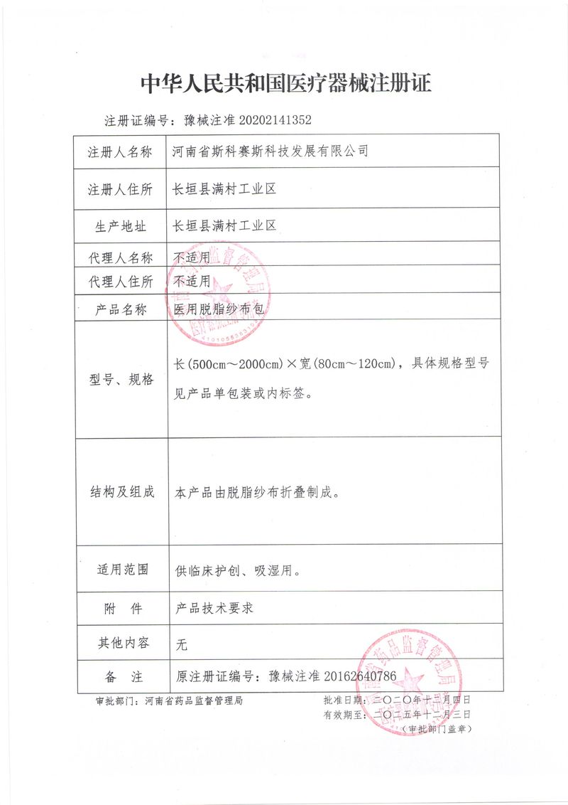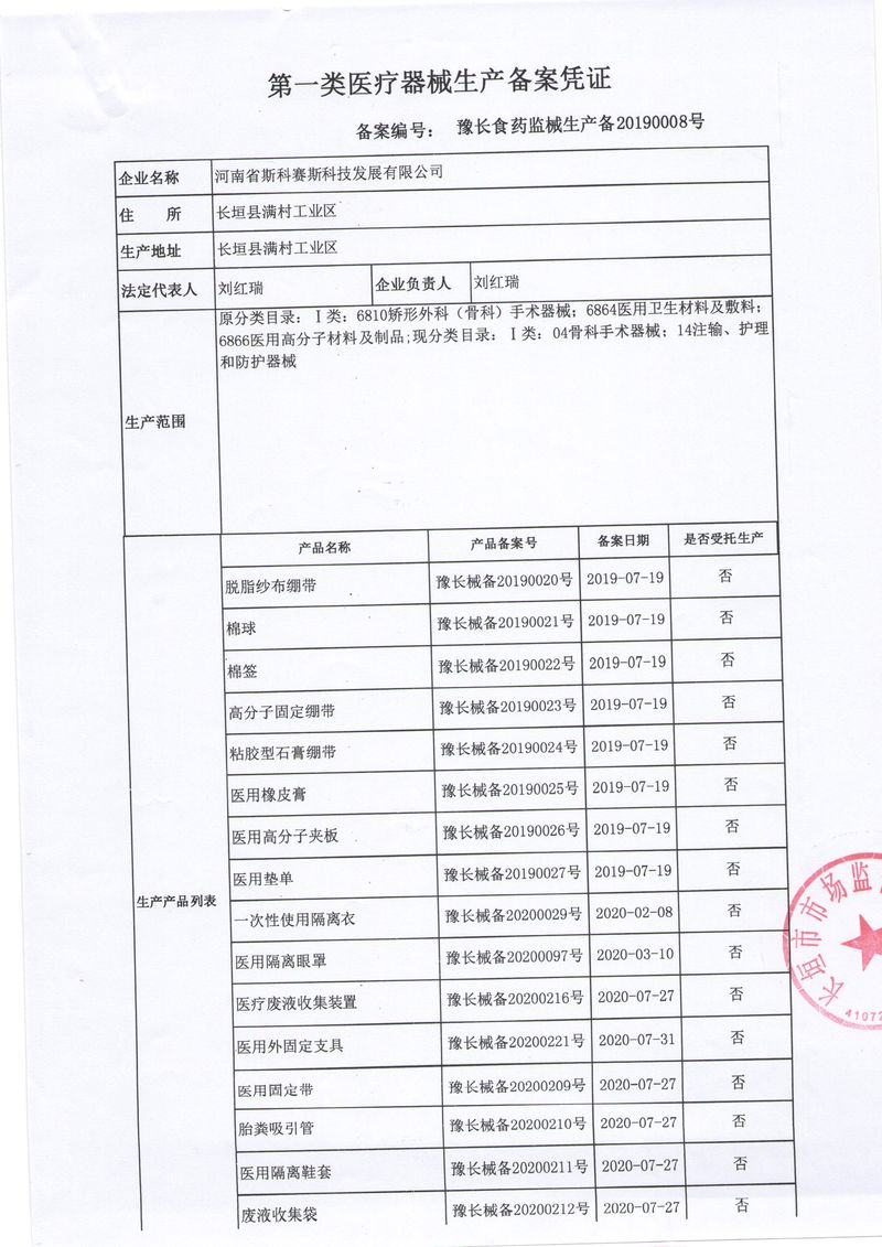 河南省斯科賽斯科技發(fā)展有限公司創(chuàng)建于 2011 年,位于“中國醫(yī)療耗材之都”- 河南省長垣縣,西臨 308 省道,南靠新菏鐵路,北依長濟高速,交通便捷,經(jīng)濟發(fā)達,環(huán)境優(yōu)美。斯科賽斯積極進入醫(yī)療健康和服務(wù)領(lǐng)域,秉承為用戶創(chuàng)造價值的理念,專注于醫(yī)用耗材解決方案的研發(fā)和運營,并為用戶提供完善的產(chǎn)品解決方案;  斯科賽斯主要生產(chǎn)醫(yī)用麻醉系列、醫(yī)用高分子系列、醫(yī)用敷料包系列、醫(yī)用無紡布系列、醫(yī)用防護系列、醫(yī)用脫脂棉系列、生物材料制品類等七大類、100 多個品種、400 多個規(guī)格的產(chǎn)品。公司占地面積約 30000 平方米,建筑面積20000 平方米,擁有 10 萬級的凈化車間總面積 10000 平方米。擁有國際先進水平的生產(chǎn)設(shè)備和檢測儀器,技術(shù)裝備精良,檢測手段完善,為醫(yī)療行業(yè)的不斷發(fā)展進步提供保障。公司順利通過 ISO9001、ISO13485 質(zhì)量管理體系認證。  斯科賽斯堅持研發(fā)高科技新產(chǎn)品,力爭在醫(yī)療器械關(guān)鍵領(lǐng)域取得技術(shù)和研發(fā)的重大突破;立足國內(nèi)和國際兩個市場,逐步實現(xiàn)管理理念、經(jīng)營機制、人力資源、技術(shù)、產(chǎn)品、市場等全方位對接,提高企業(yè)的核心競爭力;過去的歲月里,斯科賽斯砥礪前行,誠信務(wù)實,銳意進取,不斷創(chuàng)新,用自己的睿智和辛勞,以富有責任感的使命,在探索中追求,在追求中超越,致力于成為值得信賴的醫(yī)療用品生產(chǎn)企業(yè)!在未來的日子里,斯科賽斯將一如既往豪情滿懷,信心百倍,攜手并肩,執(zhí)著追求,向更高的的目標前進,鑄造新的輝煌!